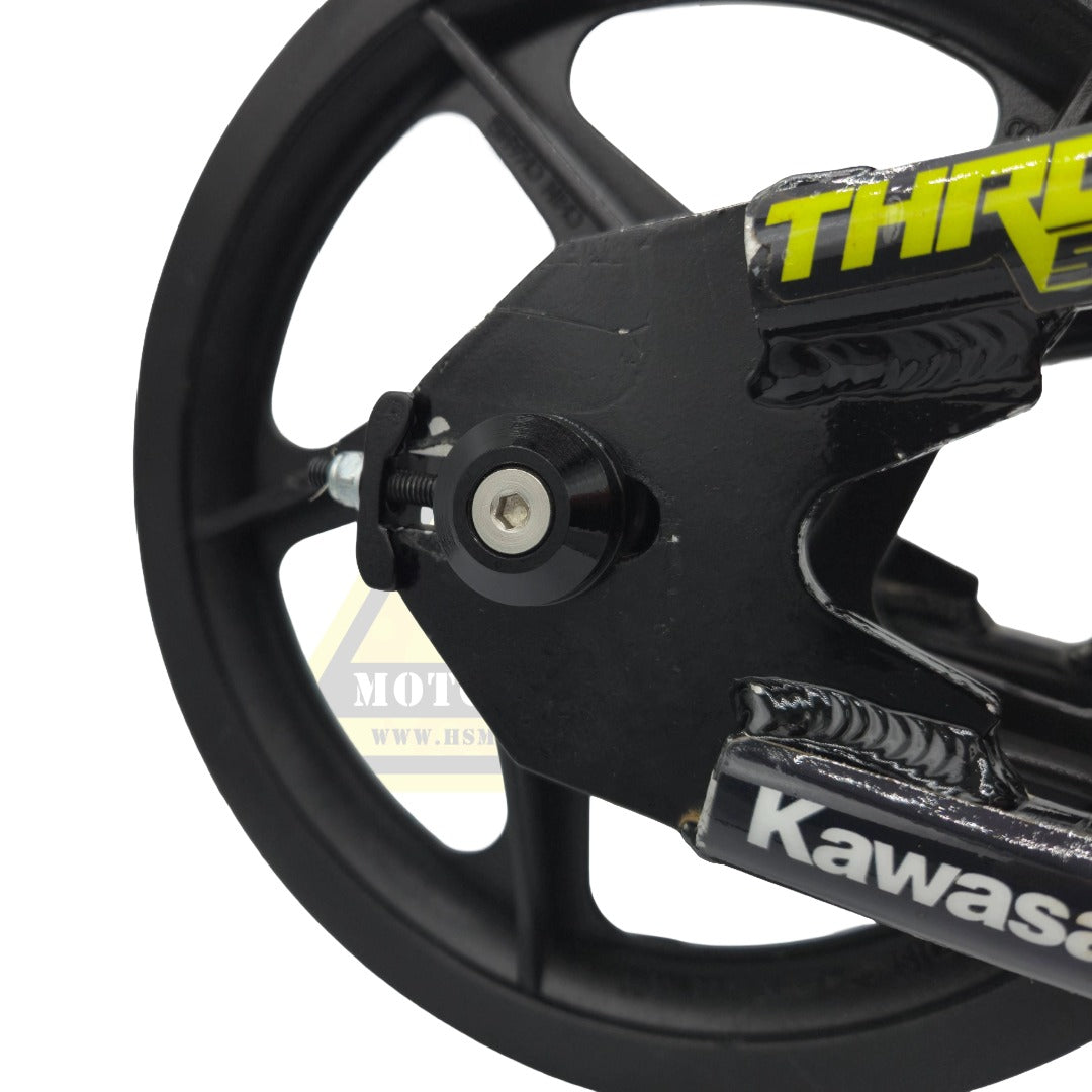 - Rear Axle has 2 different lengths per side. Longer side goes towards chain side for stock chain adjuster. This allows the axle to extended out of the dropouts into the chain adjuster. For aftermarket chain adjusters this axle can be flipped so the axle sits behind the dropouts.
